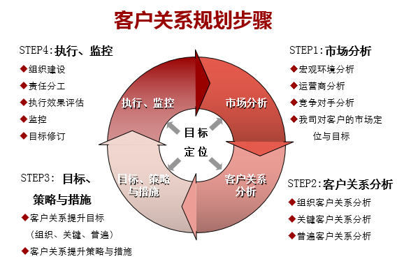 企業要在市場殘酷的競爭中脫穎而出,必須從組織客戶關系、關鍵客戶關系,及普遍客戶關系三個維度,結合業務目標,經常對齊進行分析與研討。
