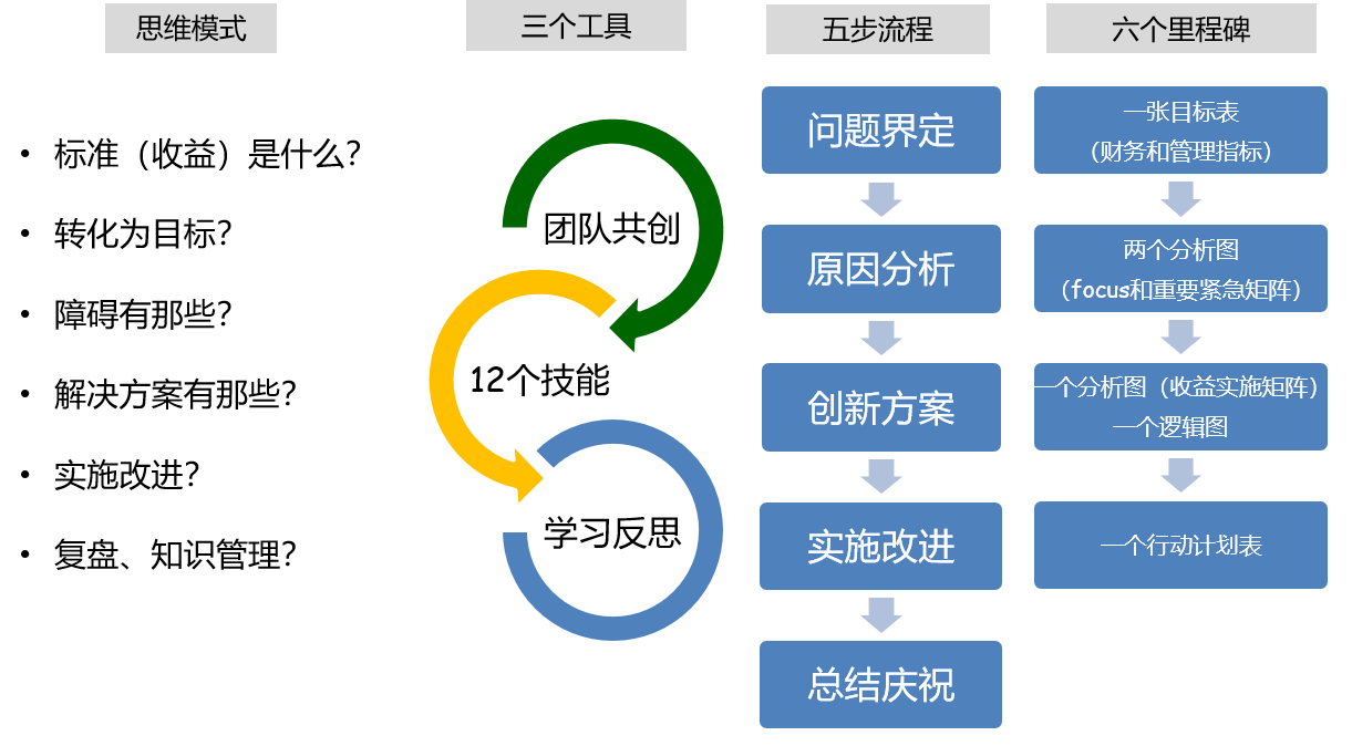 將所有影響績效提升的問題原因進(jìn)行篩選后,針對性提出解決措施并設(shè)計(jì)問題解決總體方案,培養(yǎng)系統(tǒng)思考解決問題的能力。